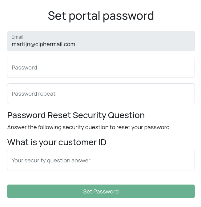 If a portal user has forgotten their password, they can initiate a password reset procedure. The system will send a password reset email containing a link that allows the user to create a new password. To enhance security, the portal may be configured to require users to set up a security question and answer during the initial sign-up process. If this feature is enabled, the user must correctly answer their security question after clicking the reset link before they can choose a new password. This ensures that only the authorized account holder can reset the credentials.